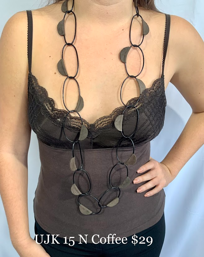 Long neck black cord circles coffee half disc leather