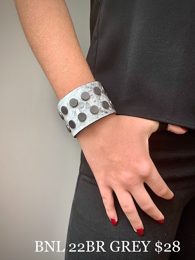 Snake pattern round gunmetal findings wide snap bracelet