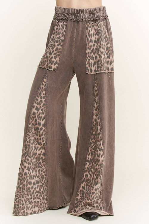 Mineral Washed Leopard Animal Print Flare Pants HP5783P1: Ashed Oak / S-M-L / 2-2-2
